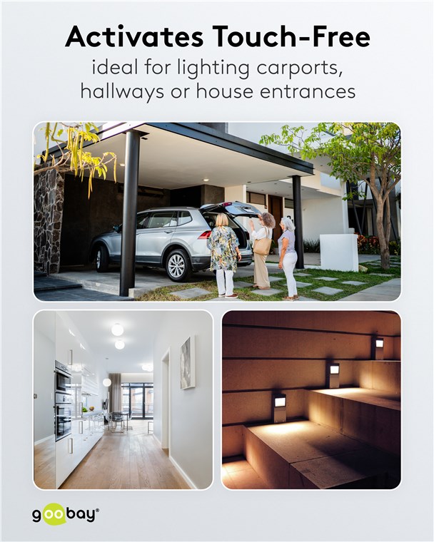 - Ersetzt den Lichtschalter und schaltet berührungslos: Praktisch zur Überwachung von Außenbereichen wie Carport, Hauseingang, Einfahrt oder Garten, für Hausautomation oder Sicherheitssysteme
