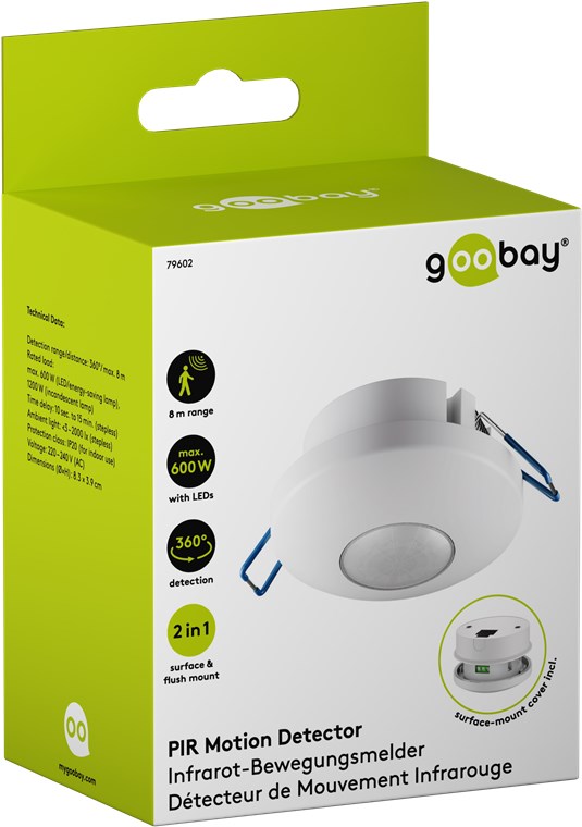 zur Aufputz- und Unterputzmontage, 360°-Erfassung, 8 m Reichweite, für innen (IP20), LED-geeignet