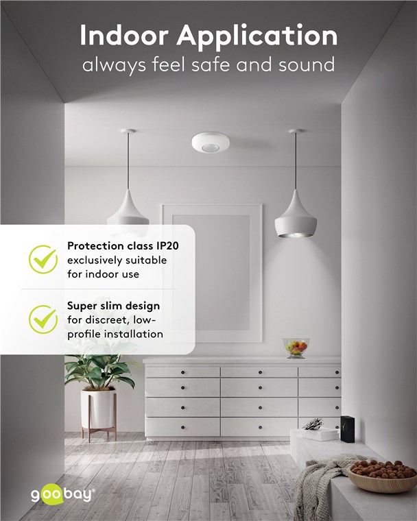 - Mit einem Erfassungswinkel von 360° ideal für die Unterputz-Deckenmontage, Installationshöhe: 2,20 m bis 4 m