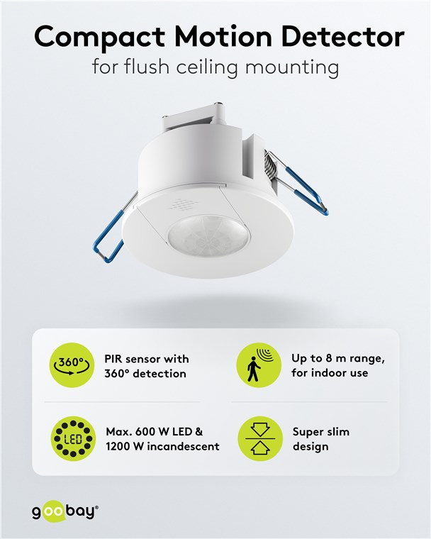 - Mit einem Erfassungswinkel von 360° ideal für die Unterputz-Deckenmontage, Installationshöhe: 1,80 m bis 4 m