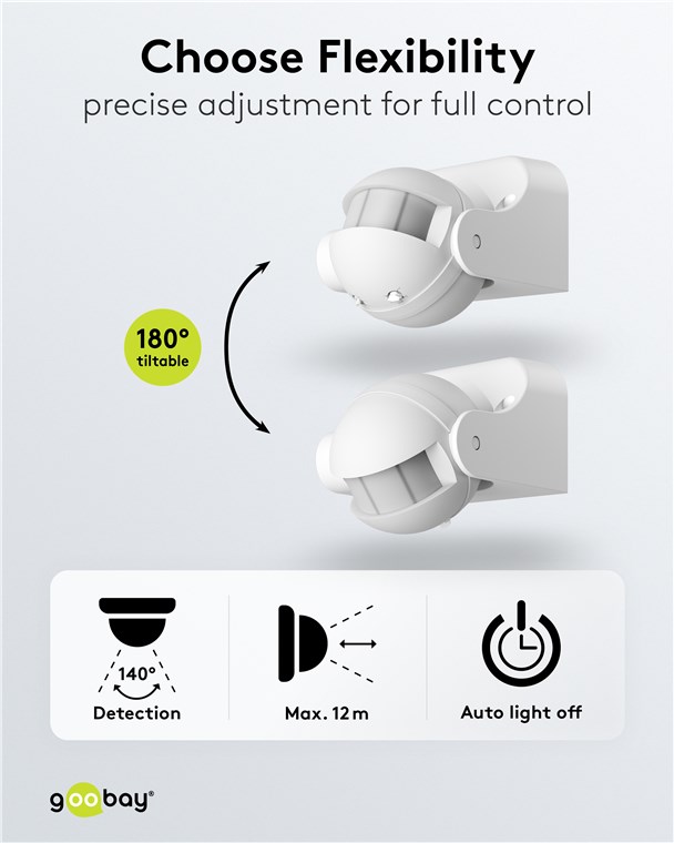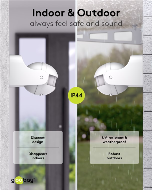 Wind und Wetter? Kein Problem, der Bewegungsmelder ist mit IP44 perfekt für Außenbereiche wie Garten, Carport oder Hauseingänge. Schließ ihn einfach an Weg- oder Außenbeleuchtung an, um Stolperfallen in der Dämmerung und im Dunkeln zu vermeiden. Bewegungsmelder von Goobay – mit Sicherheit ein gutes Gefühl.