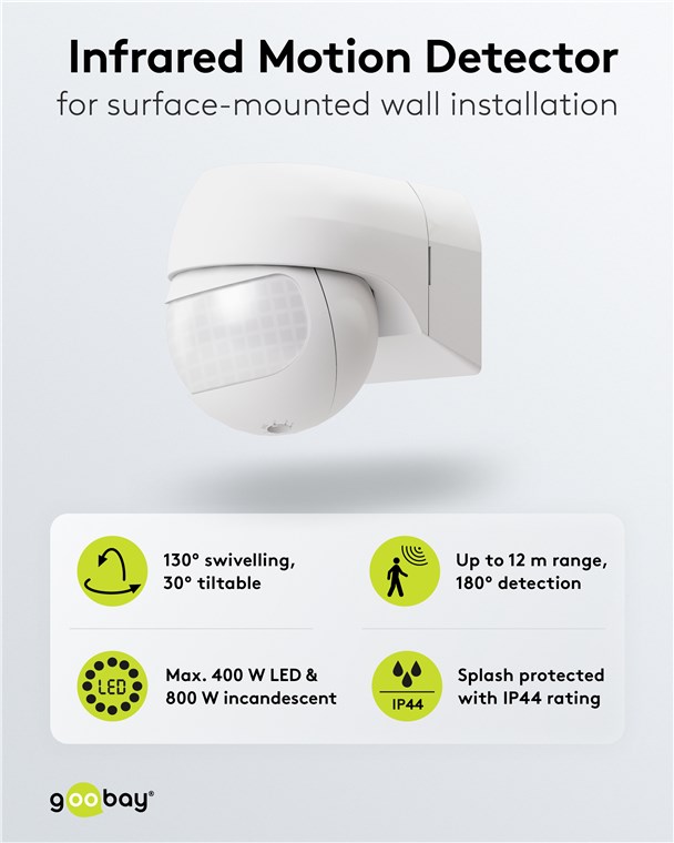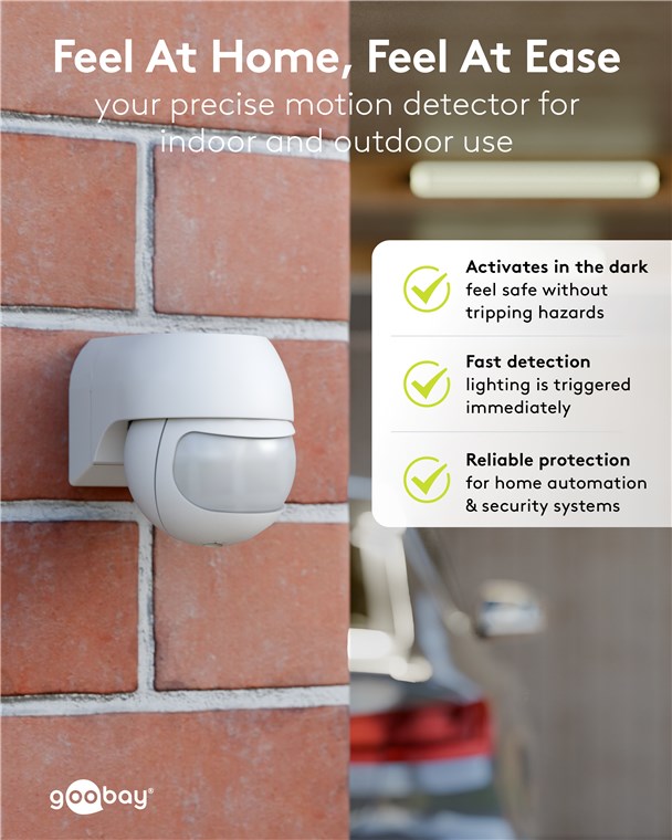 Wind und Wetter? Kein Problem, der Bewegungsmelder ist mit IP44 perfekt für Außenbereiche wie Garten, Carport oder Hauseingänge. Schließ ihn einfach an Weg- oder Außenbeleuchtung an, um Stolperfallen in der Dämmerung und im Dunkeln zu vermeiden. Bewegungsmelder von Goobay – mit Sicherheit ein gutes Gefühl.
