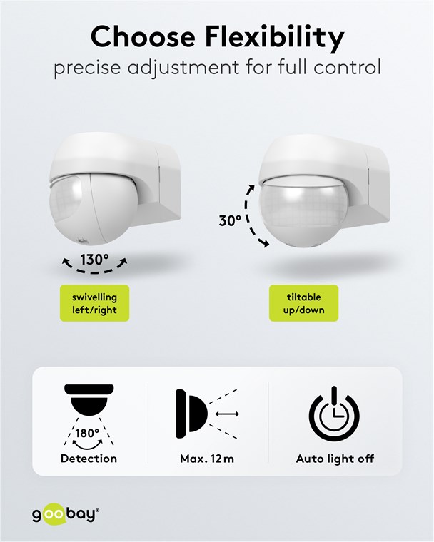 - Flexible Einstellung: Der Infrarot-Sensor ist für die optimale Ausrichtung dreh- und neigbar