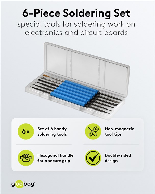 - Griffe mit sechseckigem Querschnitt sorgen für verbesserten Halt der Löthilfen ohne Verrutschen oder Verdrehen bei der Arbeit