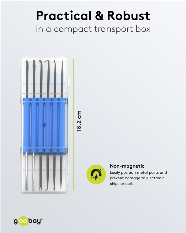 Vielseitig wie ein Schweizer Taschenmesser: Mit den zwölf Präzisionsspitzen hast du immer das richtige Werkzeug für dein DIY-Projekt zur Hand. Egal, ob Löten, Reparatur, Elektronikbasteln oder Modellbau – die verschiedenen Spitzen machen jede knifflige Herausforderung zum Kinderspiel. Mini-Werkzeug, maximal effektiv.