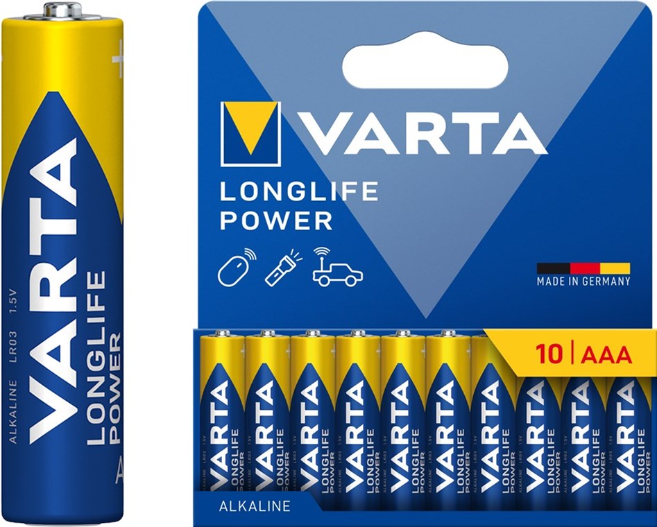 - Unbenutzte und verpackte VARTA Micro-Alkaline-Batterien bleiben bis zu 10 Jahre lang im frischen, geladenen Zustand.
