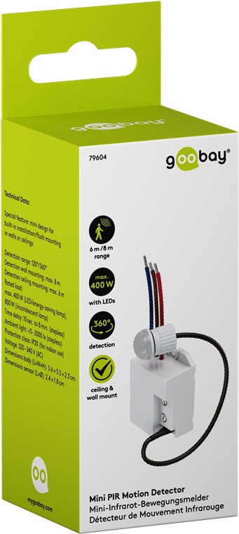 Mini-Format, maximaler Effekt. Der Mini-Bewegungsmelder ist durch den Sensor-Durchmesser von nur 1,8 cm optisch dezent angebracht, aber genau so effektiv wie ein großformatiger Bewegungsmelder. Perfekt im Korridor, Bad oder Hausflur – der Bewegungsmelder aktiviert immer zuverlässig die angeschlossene Beleuchtung.