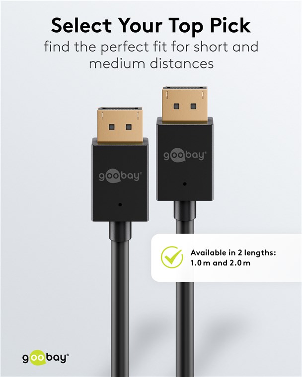 Das DisplayPort™-Kabel überzeugt dreifach: Ultraslim-Kabel, ultrakurze Stecker und ultraschmaler Biegeradius. Diese drei Faktoren machen das Kabel perfekt für die Installation auf Geräterückseiten und überall, wo nur wenig Raum verfügbar ist. Mit ultrahoher 8K-Bildauflösung für gestochen scharfe Bilder und hochfrequenter Multimonitor-Funktion ist das DisplayPort™-Kabel die perfekte Wahl für immersives Gaming und fesselnde Home-Entertainment-Erlebnisse.