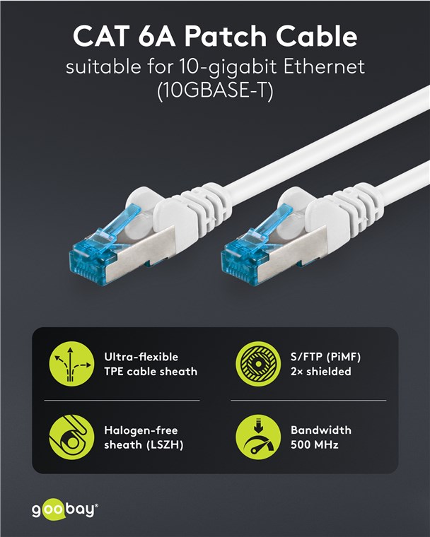 • Schnell, schneller, CAT 6A: Als CAT-6A-Netzwerkkabel geeignet für 10-Gigabit-Ethernet 10BASE-T, 100BASE-TX, 1000BASE-T, 10/100/1000/10000 Mbit/s
