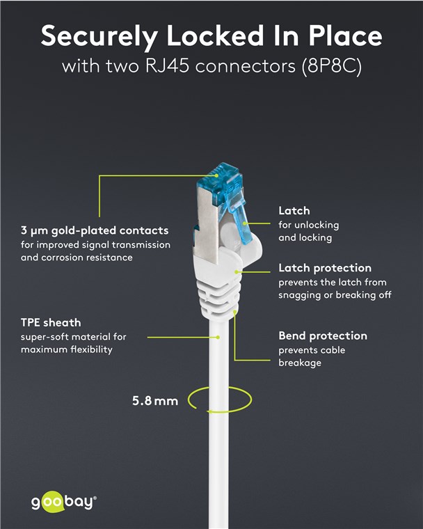 • Hohe Qualität: Hochwertiger Kupferleiter (CU) und mit 3µ vergoldete Kontaktflächen für eine leistungsfähige Verbindung sowie Längenangabe auf der umspritzten Slimline-Knickschutztülle