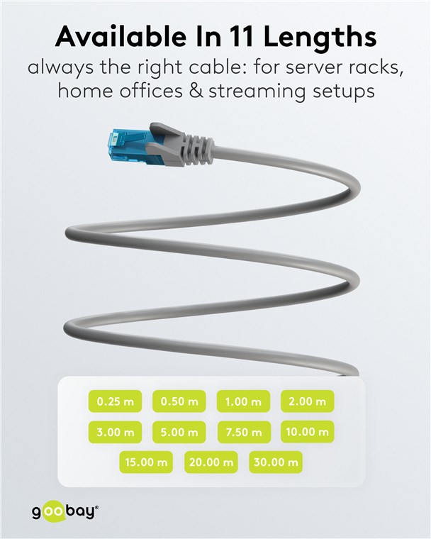 Eine CATegorie für sich: Mit ihrem weichen TPE-Mantel sind die CAT-Kabel deutlich flexibler als herkömmliche Kabel mit PVC-Ummantelung – für eine verbesserte Handhabung und eine superweiche Haptik. Zieh deinem alten PVC-Kabel den Stecker und setze auf TPE – im Homeoffice, Server-Rack oder Streaming-Setup.
