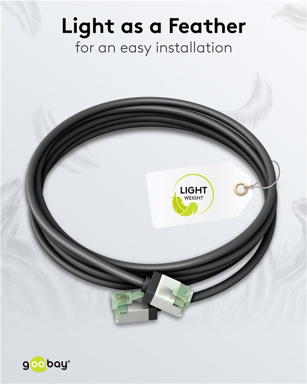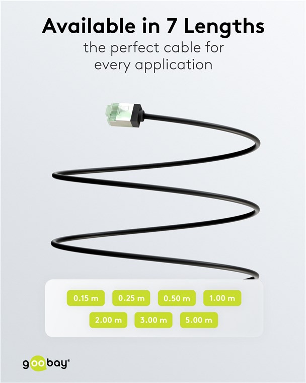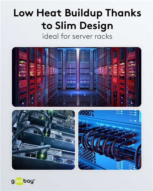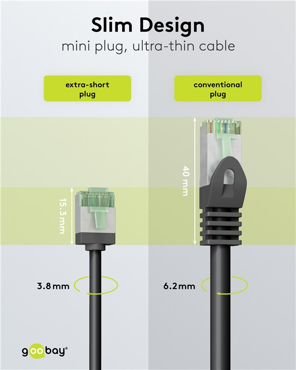 Eine CATegorie für sich: Die superslimmen CAT-Kabel mit extrakurzen Steckern reduzieren das Materialvolumen in Serverschränken und Patchpanels drastisch - für eine deutlich verbesserte Luftzirkulation und einen geringeren Wärmestau als bei herkömmlicher Verkabelung. Zusätzlich sorgen der weiche TPE-Mantel und schlanke Kupferleiter für die besondere Flexibilität und Materialeffizienz, die diese Kabelgeneration zum perfekten Netzwerkpartner machen.