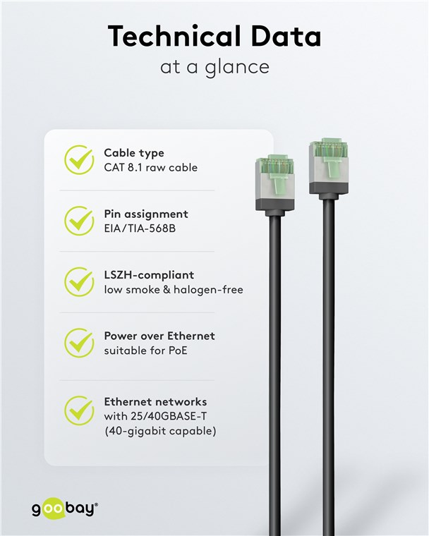 • Mit einer Übertragungsbandbreite von bis zu 2 GHz (2.000 MHz) besitzt das Ethernetkabel die 4-fache Bandbreite von CAT-6A-Kabeln