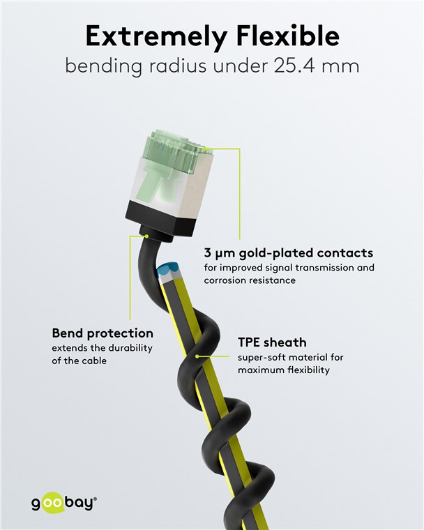 • Durch AWG 32 und einen Außendurchmesser von 3,8 mm ist das Kabel ultraschlank, aber ebenso leistungsstark wie ein Standard-CAT-Kabel