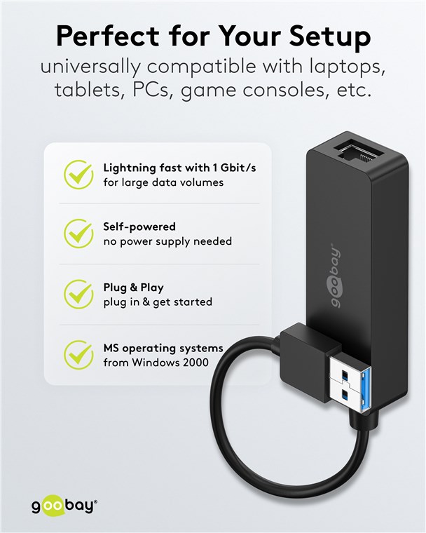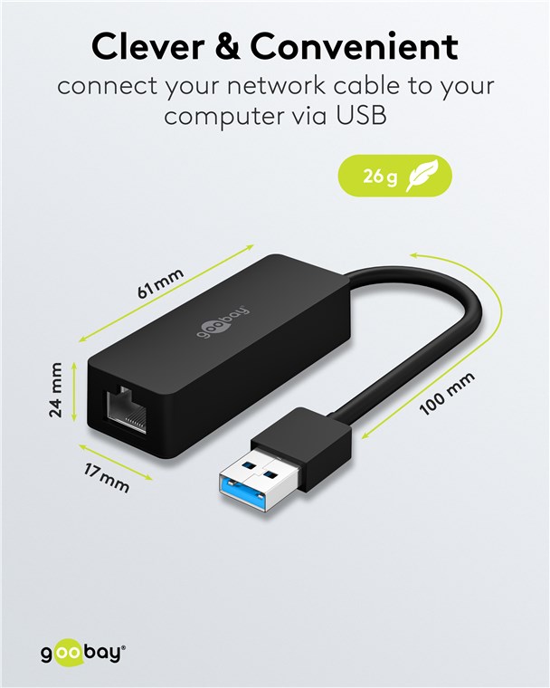 - Mit USB 3.0 schafft der USB-Ethernet-Adapter doppelt so schnelle Übertragungsraten wie USB 2.0 im Gigabit-Netzwerk