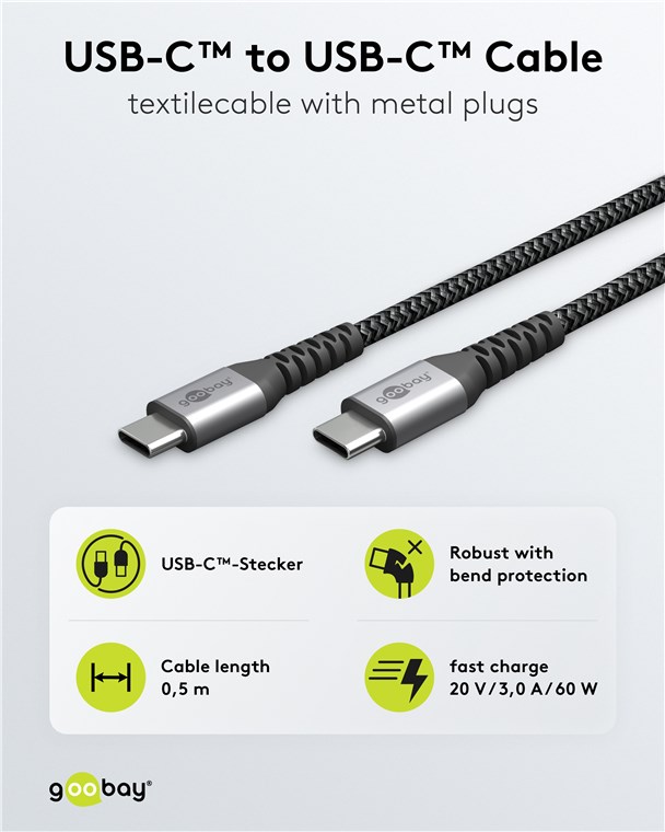 - Das Goobay USB-C™-Ladekabel für superschnelles Laden mit 60 W