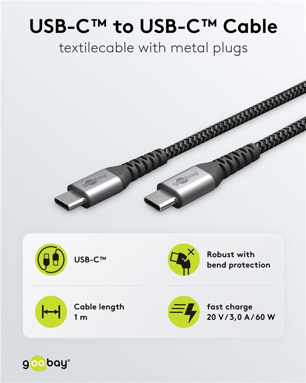- Das Goobay USB-C™-Ladekabel für superschnelles Laden mit 60 W
