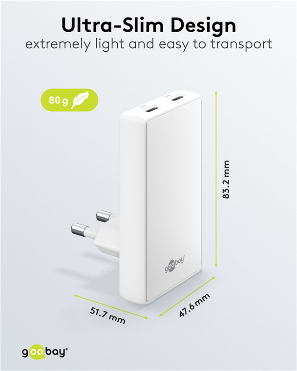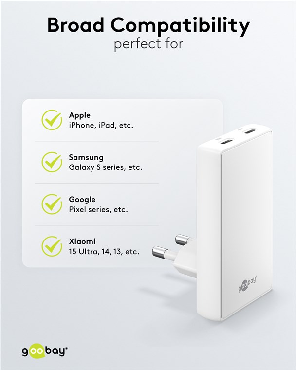 - Mit der starken Leistung von 45 W und dem universellen USB-C™-Anschluss versorgt das Goobay-Netzteil zahlreiche Geräte, vom Smartphone bis hin zu kleinen Notebooks