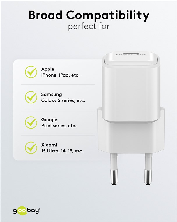 - Mit 20 W Leistung ist der Ladeadapter speziell auf kleine Geräte wie Smartphones, Bluetooth-Kopfhörer, Tablets oder Powerbanks zugeschnitten