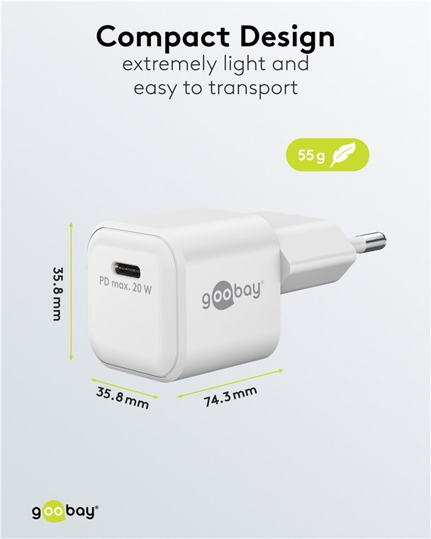 - Die superkompakte und leichte Bauform passt in jede Tasche und macht das USB-C™-Netzteil zum praktischen Begleiter auf Reisen