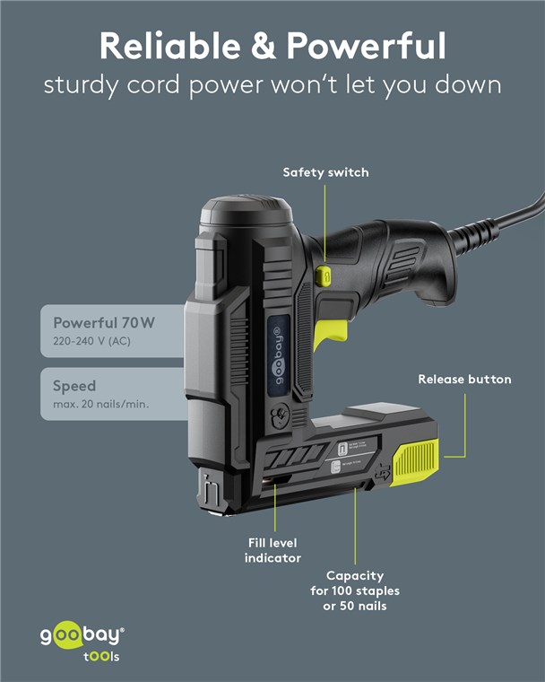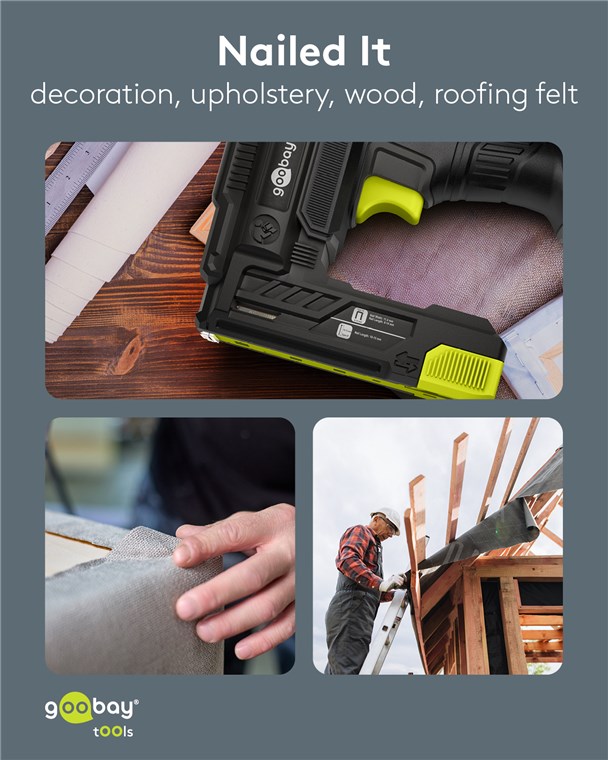 - Perfect for DIY projects and upholstery work: The electric nail gun cleanly and precisely fastens materials such as fabric, foil, leather, paper, mesh, plastics or wood