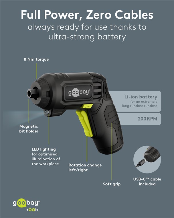 - Successfully complete your project: Powerful electric screwdriver with 8 Nm torque, in a compact format for screwdriving jobs at home, in the workshop or for hobby use