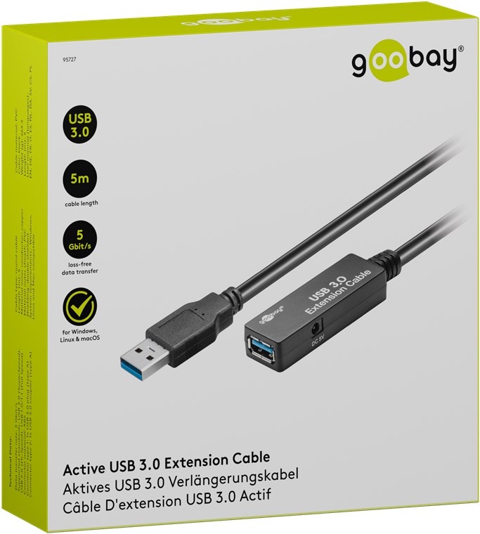 - The active USB extension provides loss-free and significantly further signal transmission than the 3 m possible with passive USB 3.0 cables