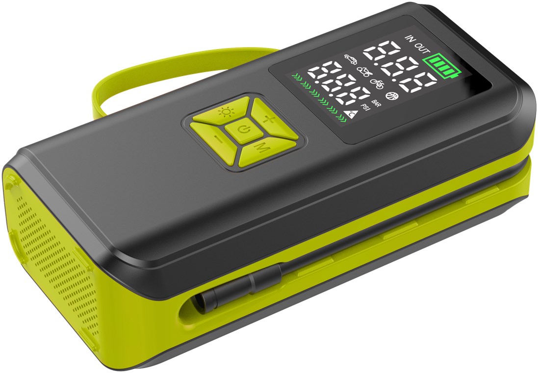 - Super-flexible air compressor: With five different modes (car, motorcycle, bicycle, ball, custom setting) and a compressed air display in either psi or bar