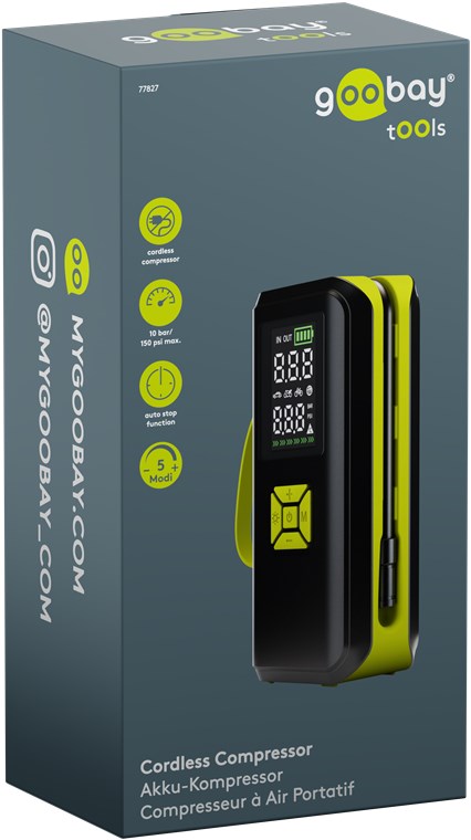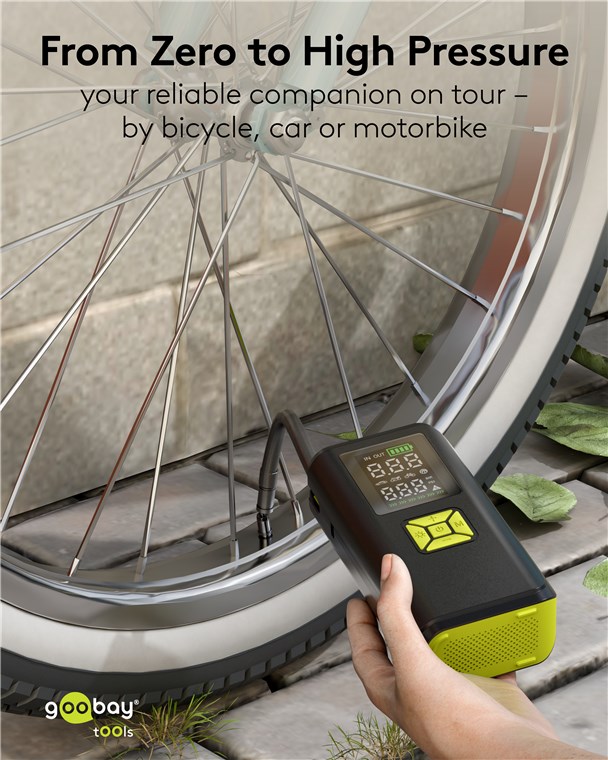 The mini compressor is a handy companion on bike rides or in the car, much more convenient than a manual bike pump and more flexible than a heavy, corded compressor for car tyres. The pump is equipped with two bright LEDs for reliable use in the dark.