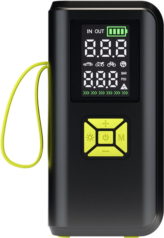 - Full convenience: Easy to use with five buttons and a large LED display with battery status indicator, air pressure gauge and target pressure value