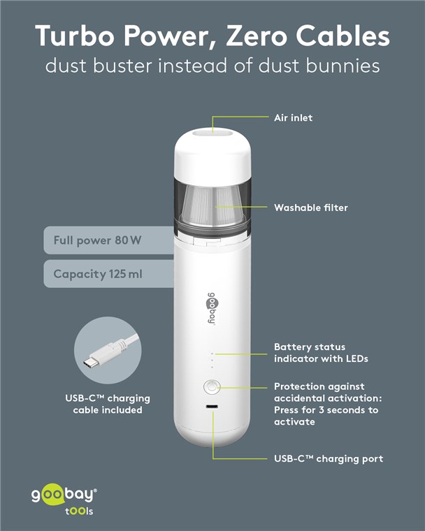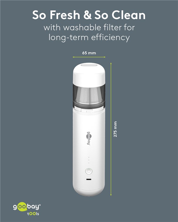 - Handy design: The cordless vacuum cleaner reliably cleans desk accessories such as keyboards or hard-to-reach places, e.g. sofa corners – dust and animal hair don't stand a chance