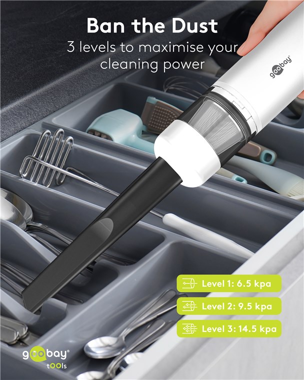 - Handheld vacuum cleaner for all challenges: With 3 power settings, the car vacuum cleaner cleans sensitive surfaces and stubborn dirt and can also be used for vacuum bags