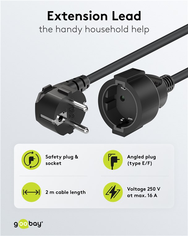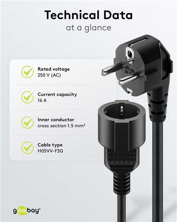 • The extension cord is ideally suited for coupling devices with medium mechanical stress to the socket outlet.