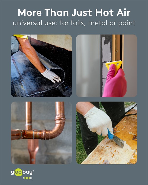 - Versatile heat gun, e.g. for attaching heat-shrink tubing, defrosting metal objects, shaping plastic or metal building materials