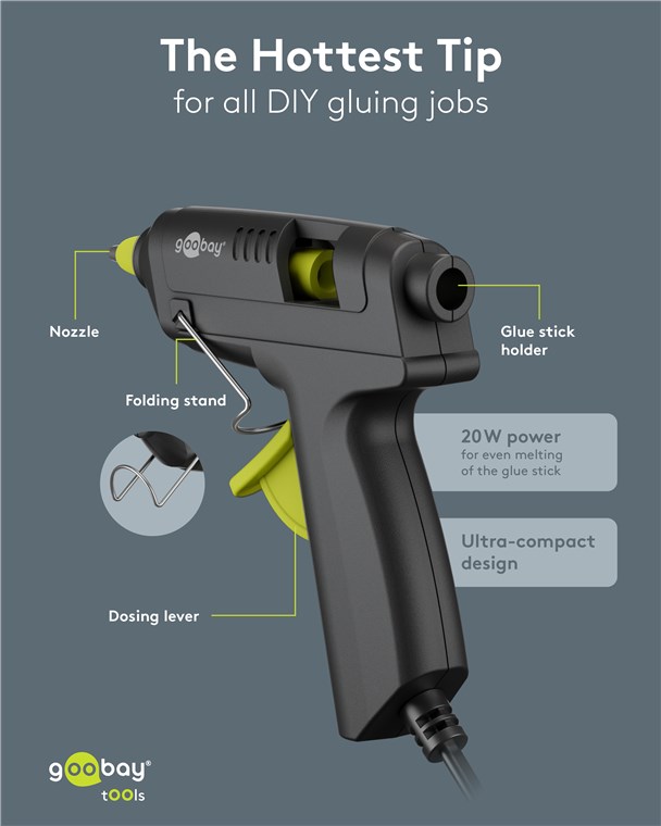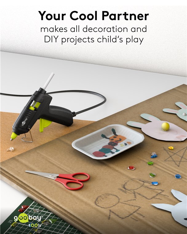 • Glues materials quickly and reliably together: Compact hot glue gun for all gluing jobs when crafting, decorating or repairing