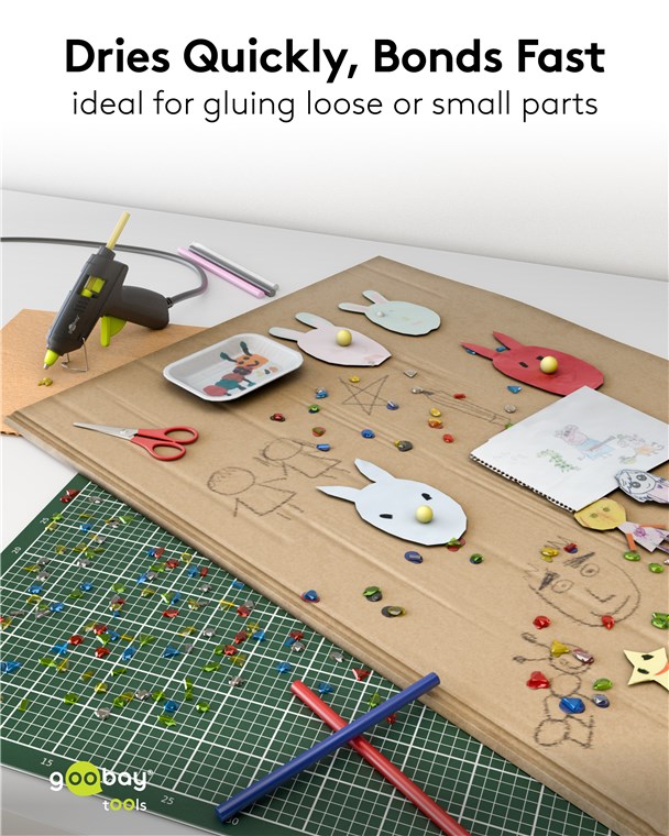 - Versatile: The glue gun sticks are suitable for numerous materials, e.g. cardboard, ceramics, wood, metal, leather, acrylic and glass