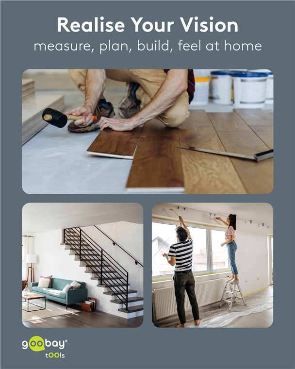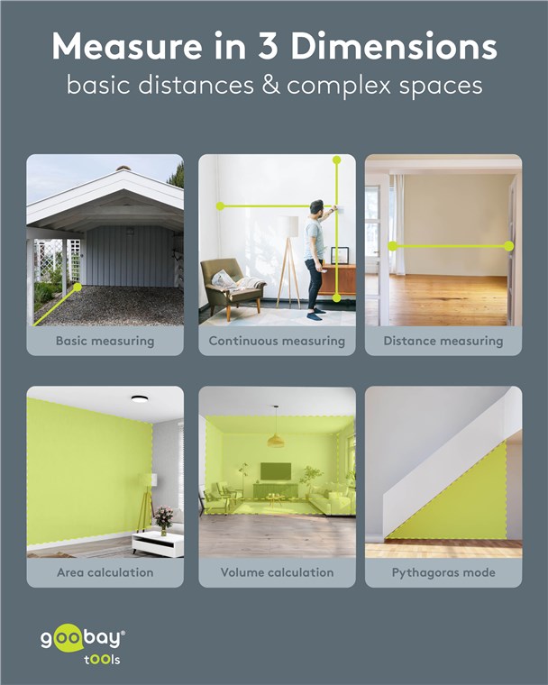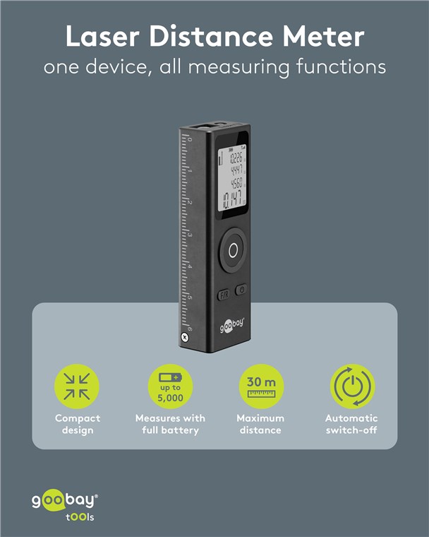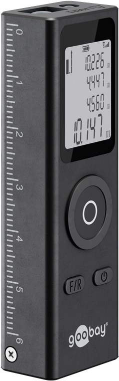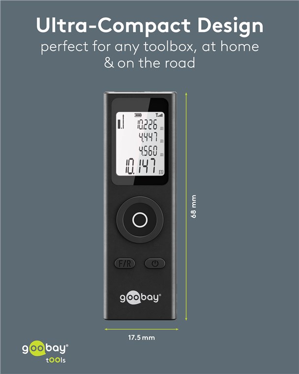 - Ultra-compact distance meter for precisely measuring room, floor and wall areas during renovation work, e.g. when painting or laying tiles, laminate or parquet flooring