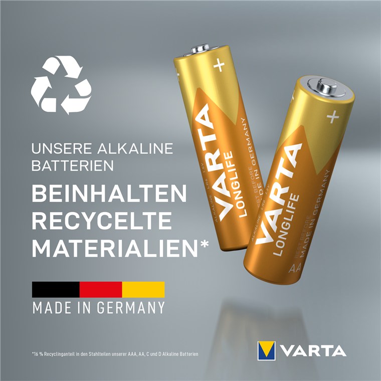 - The AA batteries are a branded product with high quality ("Made in Germany").