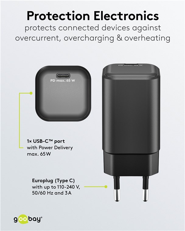 - With a powerful output of 65 W and the versatile USB-C™ connection, the charging adapter is suitable for just about any device - from smartphones to high-performance notebooks