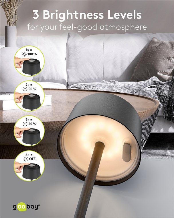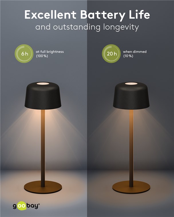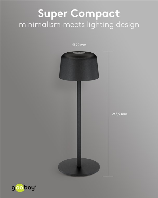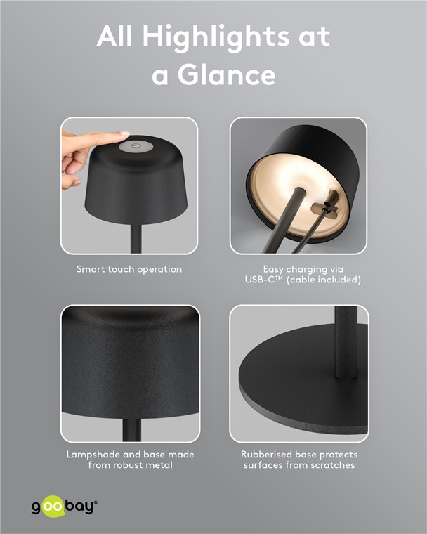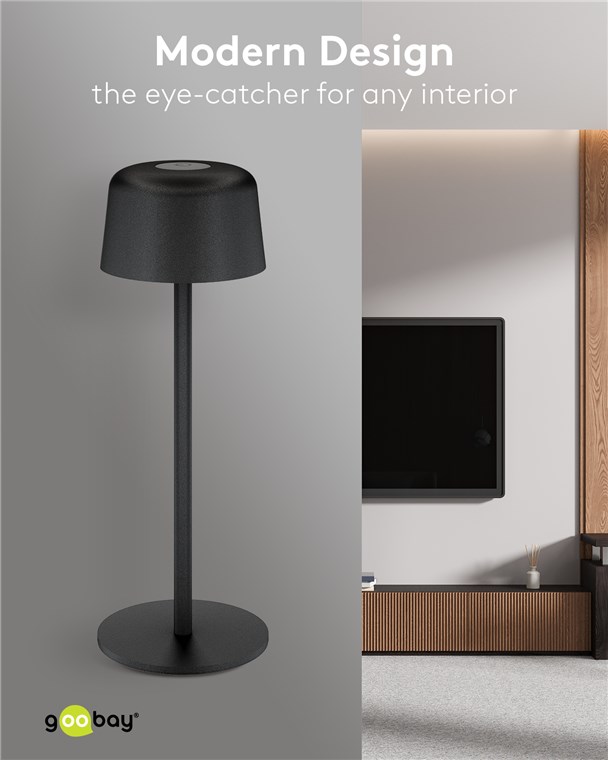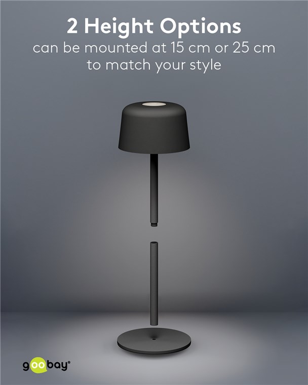 With its minimalist, Scandinavian design, the small table lamp refines any living room, bedroom or dining room and makes a style statement at every garden party. Made from high-quality, solid metal, the innovative Goobay light stands for quality and durability.