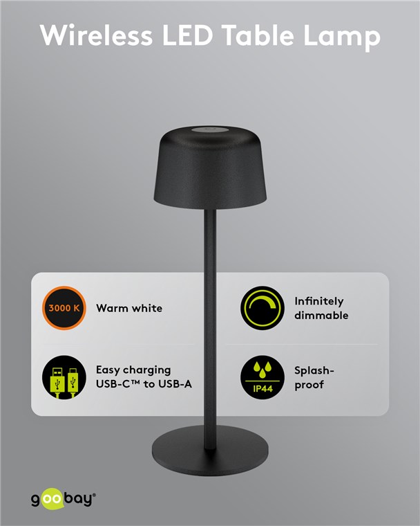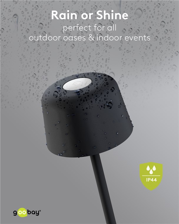 • Thanks to its splash water protection (protection class IP44), the table lamp is also perfect for the patio, balcony or garden
