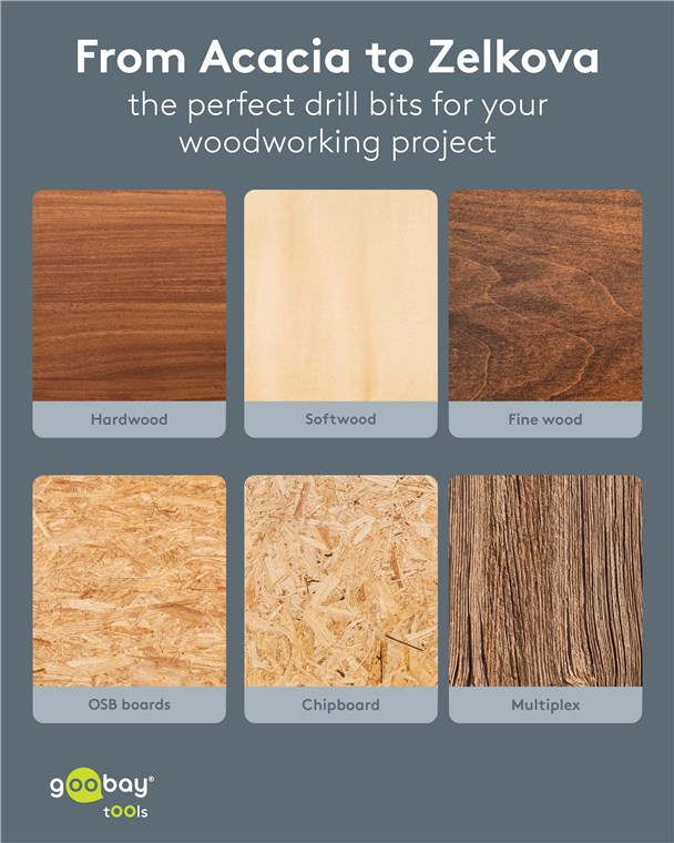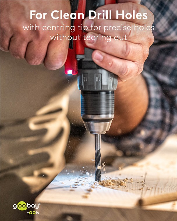 Knock on wood: The drill bit set is your reliable helper for furniture assembly, DIY and carpentry. The centring tip ensures precise, straight holes. With individually labelled slots in the box, the right drill bit is always at hand.