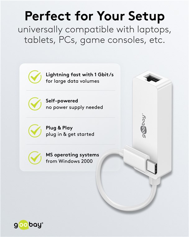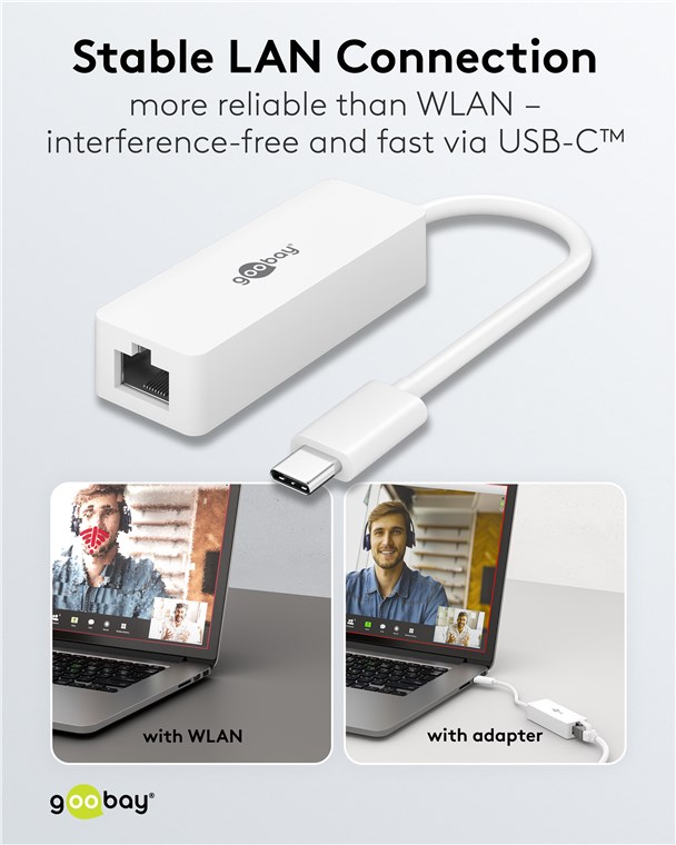 L'Internet filaire est moins perturbé que le WLAN, mais l'ordinateur portable ne dispose pas de son propre port Ethernet ? L'adaptateur LAN-USBB-C™ pratique relie l'ordinateur en tout confort à un câble réseau existant. Pour les jeux en ligne, les appels vidéo et le streaming avec Gigabit Ethernet – sans lag ni problèmes de connexion. Câblage rapide, streaming sûr !