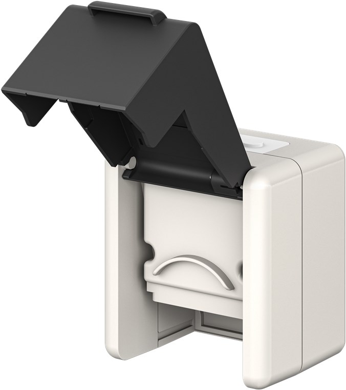 Toujours prêt à affronter les intempéries : Tu peux installer la prise apparente avec indice de protection IP44 en toute sécurité dans toutes les pièces humides. Les ports Keystone intégrés te permettent de câbler rapidement et facilement tous les connecteurs, du RJ45 au HDMI™, en passant par l'USB ou l'antenne satellite. Câblage rapide, transmission sécurisée !
