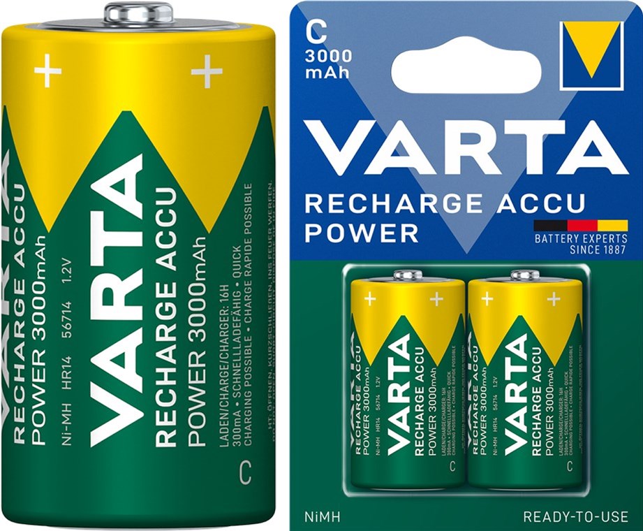 - Les piles rechargeables VARTA C 56714 sont particulièrement respectueuses de l'environnement, car elles sont rechargeables jusqu'à 1.000 fois.
