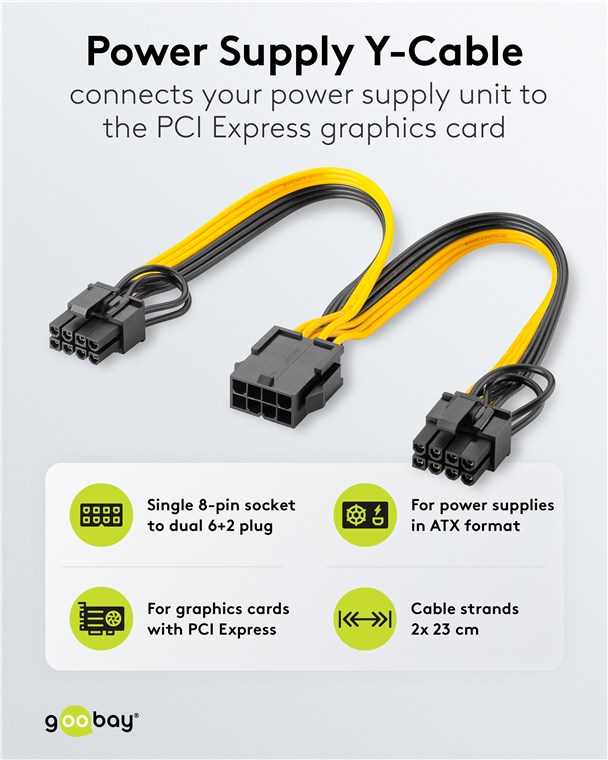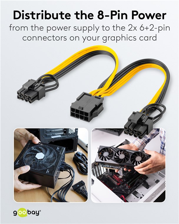 • Câble d'alimentation pour le raccordement de blocs d'alimentation PC modulaires à des cartes graphiques doubles à 6 pins et 8 pins