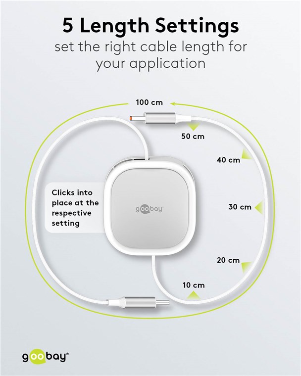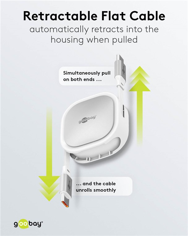 - Câble de charge USB-C™ extensible et plat dans un boîtier compact, parfait pour le transport dans la poche sans enchevêtrement ni rupture de câble