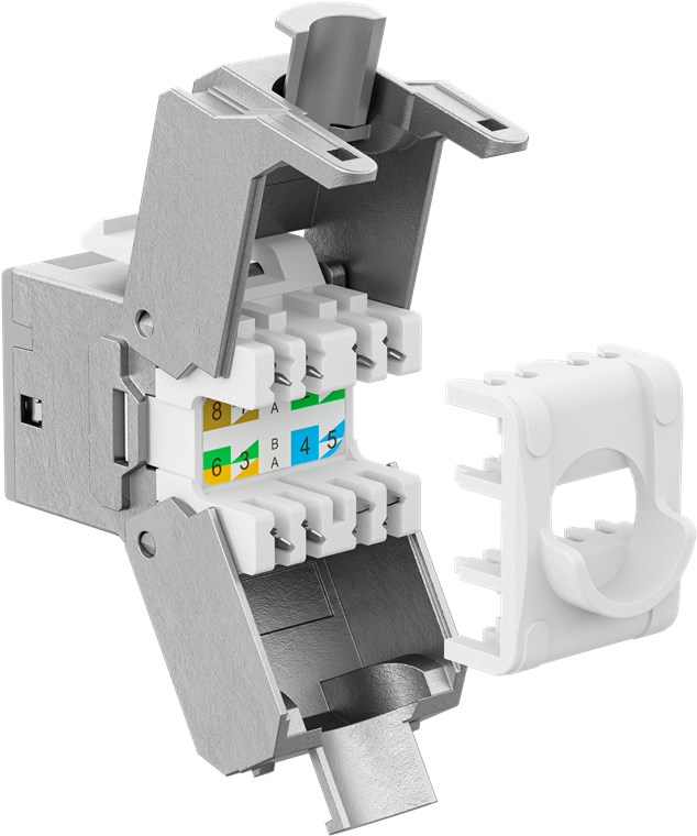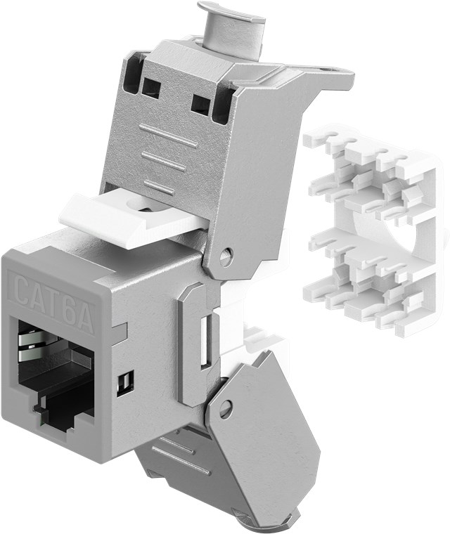 • Module Keystone CAT 6A au design fin avec une largeur de 14,5 mm pour une installation peu encombrante dans le panneau de brassage – plus jamais de problèmes d'espace lors de l'insertion de plusieurs modules côte à côte