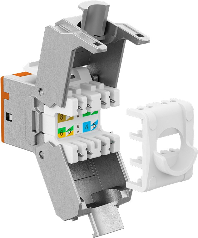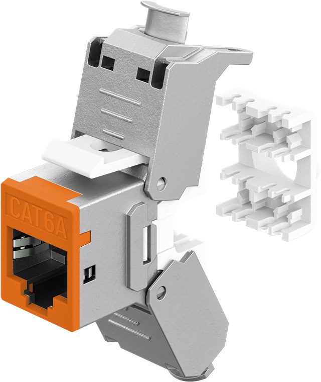 • Module Keystone CAT 6A au design fin avec une largeur de 14,5 mm pour une installation peu encombrante dans le panneau de brassage – plus jamais de problèmes d'espace lors de l'insertion de plusieurs modules côte à côte