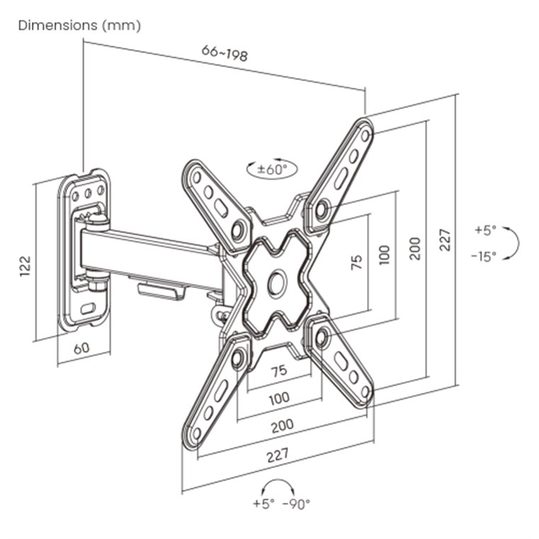 - Grâce à son extension jusqu'à 19,8 cm et à sa fonction pivotante, le support mural permet de regarder la télévision même sous des angles difficiles
